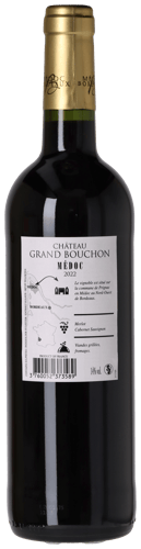 Château Grand Bouchon Médoc 2022 är framställt av 63 % Merlot och 37 % Cabernet Sauvignon, som Didier Friand selekterar från upp till 30 år gamla vinstockar på sina hållbarhetscertifierade 22 hektar i kommunen Prignac-en-Médoc – bara 7–8 km nordväst om det berömda Saint-Estèphe. Vinet är framställt i en ren och fruktig stil med jäsning och lagring i ståltank.